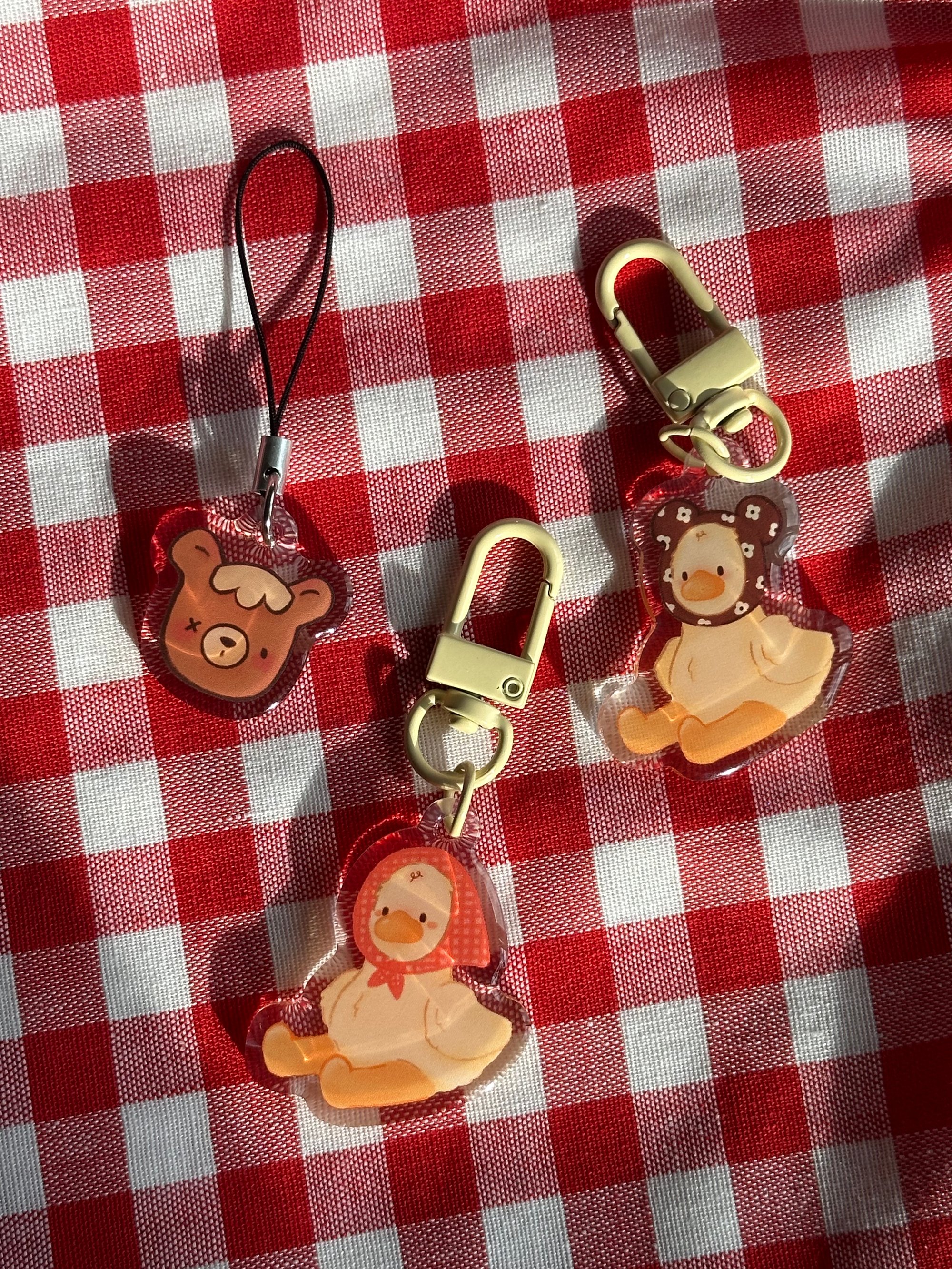 This is a small acrylic keychain with a tiny hat goose. Designed by meee